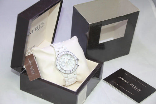 AS-IS Anne Klein 121979WMWB ANNE KLEIN WHITE CERAM CHRONO WATCH